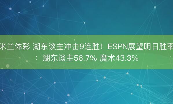 米兰体彩 湖东谈主冲击9连胜!ESPN展望明日胜率:湖东谈主56.7% 魔术43.3%
