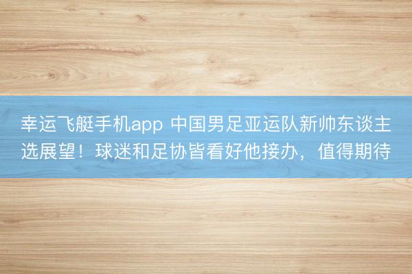 幸运飞艇手机app 中国男足亚运队新帅东谈主选展望!球迷和足协皆看好他接办,值得期待