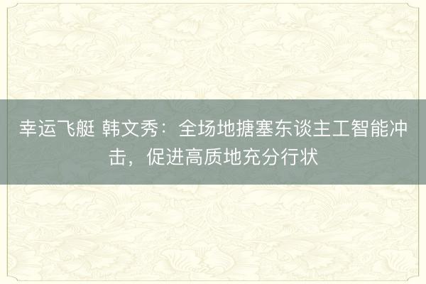 幸运飞艇 韩文秀:全场地搪塞东谈主工智能冲击,促进高质地充分行状