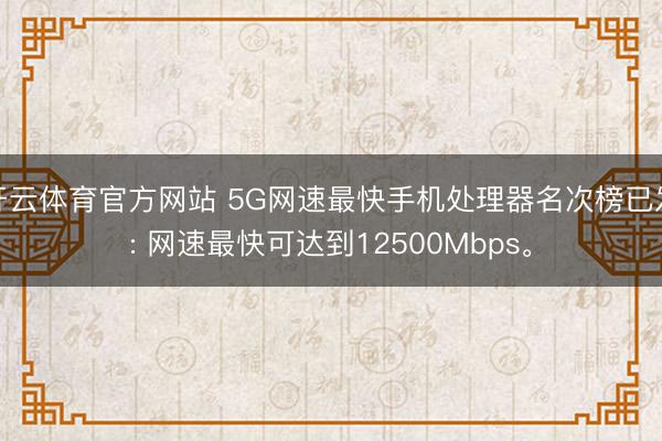开云体育官方网站 5G网速最快手机处理器名次榜已发: 网速最快可达到12500Mbps。