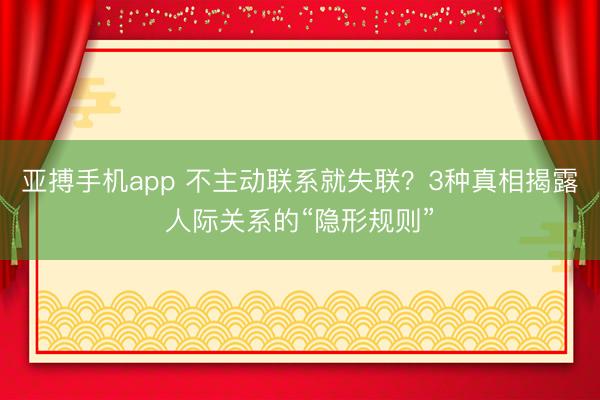 亚搏手机app 不主动联系就失联?3种真相揭露人际关系的“隐形规则”