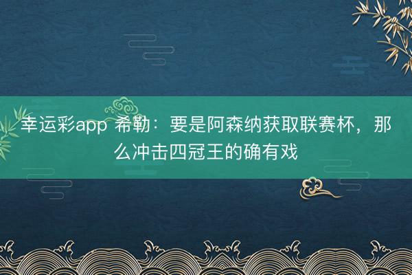幸运彩app 希勒:要是阿森纳获取联赛杯,那么冲击四冠王的确有戏