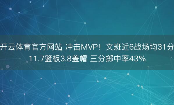 开云体育官方网站 冲击MVP!文班近6战场均31分11.7篮板3.8盖帽 三分掷中率43%