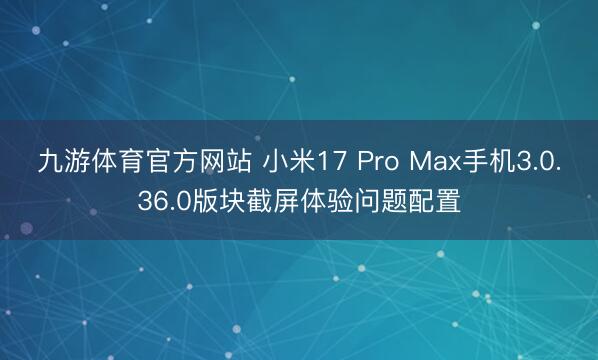 九游体育官方网站 小米17 Pro Max手机3.0.36.0版块截屏体验问题配置