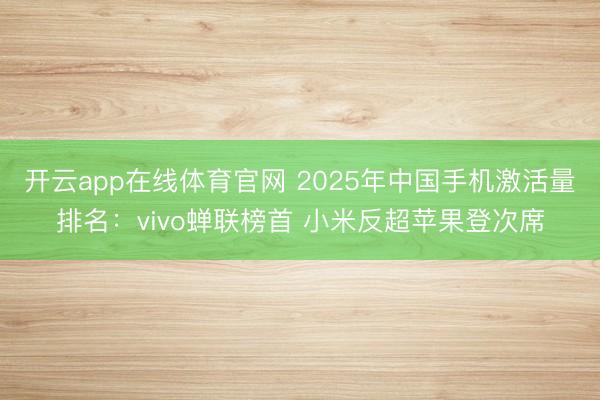 开云app在线体育官网 2025年中国手机激活量排名:vivo蝉联榜首 小米反超苹果登次席