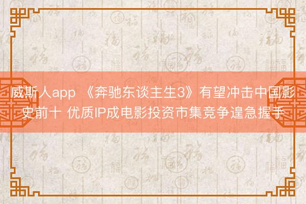 威斯人app 《奔驰东谈主生3》有望冲击中国影史前十 优质IP成电影投资市集竞争遑急握手