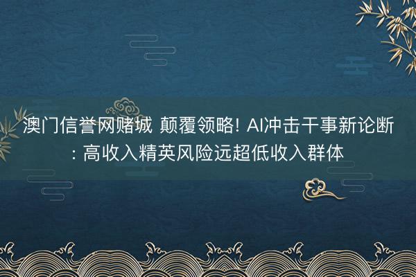 澳门信誉网赌城 颠覆领略! AI冲击干事新论断: 高收入精英风险远超低收入群体