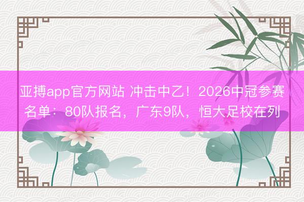 亚搏app官方网站 冲击中乙!2026中冠参赛名单:80队报名,广东9队,恒大足校在列