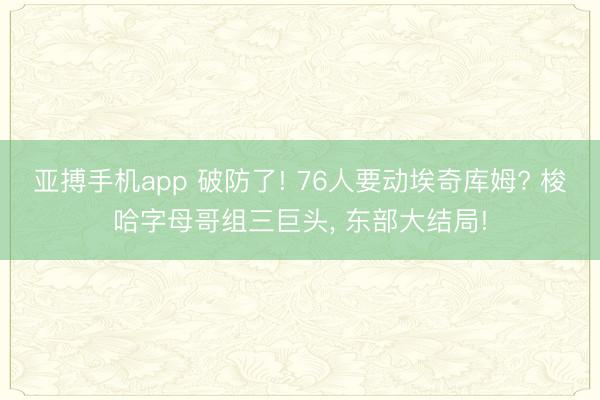 亚搏手机app 破防了! 76人要动埃奇库姆? 梭哈字母哥组三巨头, 东部大结局!