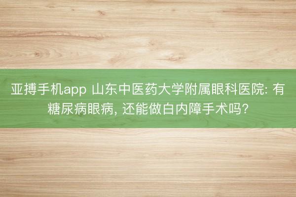- 亚搏手机app 山东中医药大学附属眼科医院: 有糖尿病眼病, 还能做白内障手术吗?