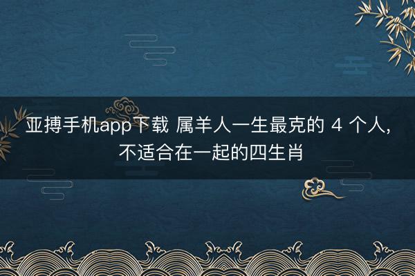 - 亚搏手机app下载 属羊人一生最克的 4 个人, 不适合在一起的四生肖