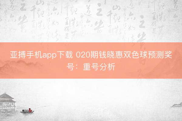 亚搏手机app下载 020期钱晓惠双色球预测奖号:重号分析