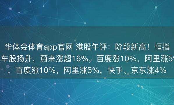 华体会体育app官网 港股午评:阶段新高!恒指大涨1.8%,科技、汽车股扬升,蔚来涨超16%,百度涨10%,阿里涨5%,快手、京东涨4%
