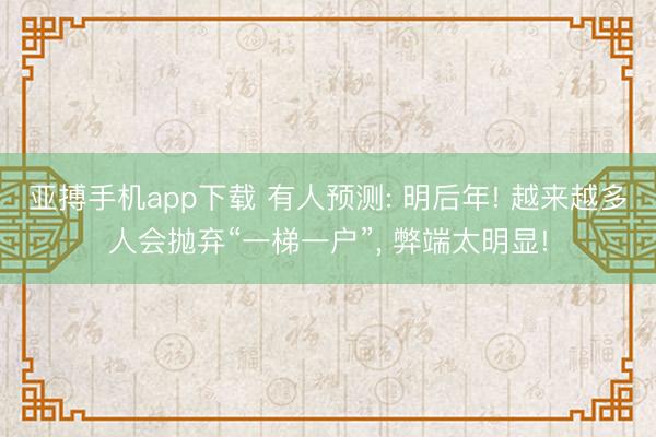 - 亚搏手机app下载 有人预测: 明后年! 越来越多人会抛弃“一梯一户”, 弊端太明显!