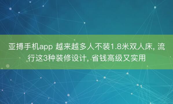 - 亚搏手机app 越来越多人不装1.8米双人床, 流行这3种装修设计, 省钱高级又实用