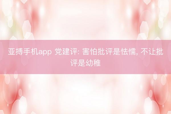 - 亚搏手机app 党建评: 害怕批评是怯懦, 不让批评是幼稚