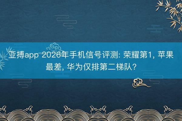 - 亚搏app 2026年手机信号评测: 荣耀第1, 苹果最差, 华为仅排第二梯队?