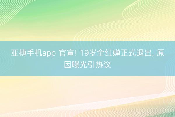 - 亚搏手机app 官宣! 19岁全红婵正式退出, 原因曝光引热议