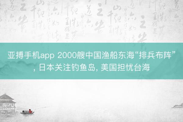 - 亚搏手机app 2000艘中国渔船东海“排兵布阵”, 日本关注钓鱼岛, 美国担忧台海