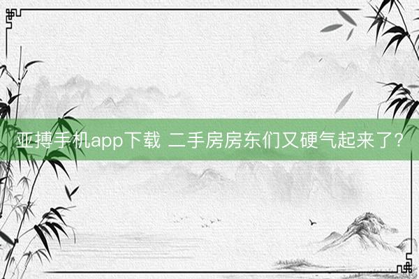 - 亚搏手机app下载 二手房房东们又硬气起来了?