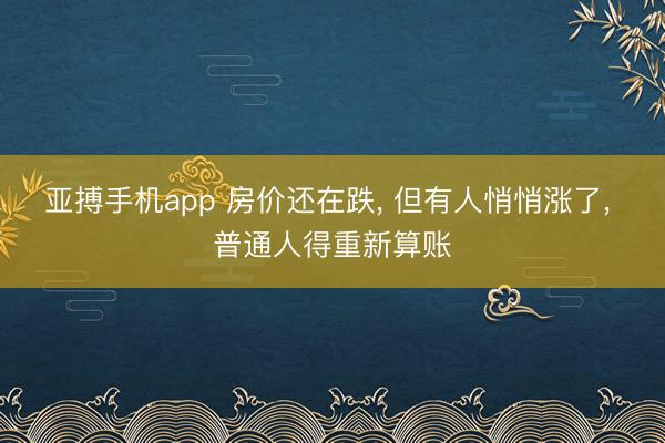 - 亚搏手机app 房价还在跌, 但有人悄悄涨了, 普通人得重新算账