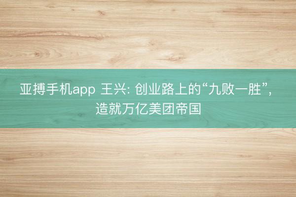 - 亚搏手机app 王兴: 创业路上的“九败一胜”, 造就万亿美团帝国