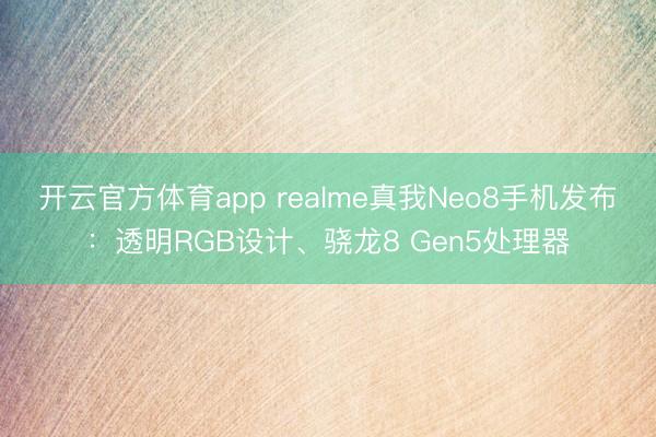 开云官方体育app realme真我Neo8手机发布:透明RGB设计、骁龙8 Gen5处理器