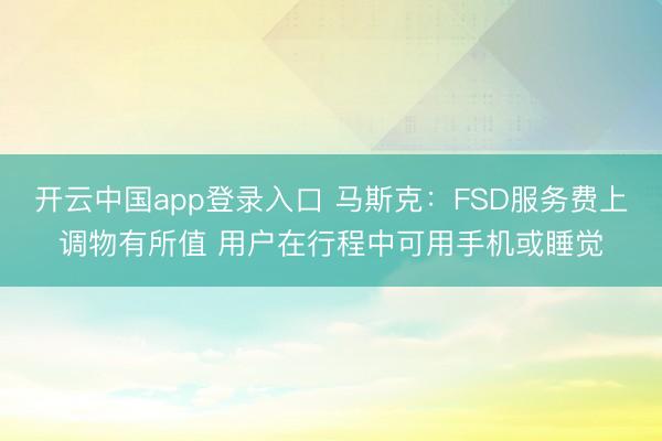 开云中国app登录入口 马斯克:FSD服务费上调物有所值 用户在行程中可用手机或睡觉