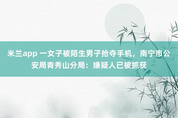 米兰app 一女子被陌生男子抢夺手机,南宁市公安局青秀山分局:嫌疑人已被抓获