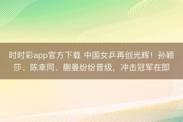 时时彩app官方下载 中国女乒再创光辉!孙颖莎、陈幸同、蒯曼纷纷晋级,冲击冠军在即