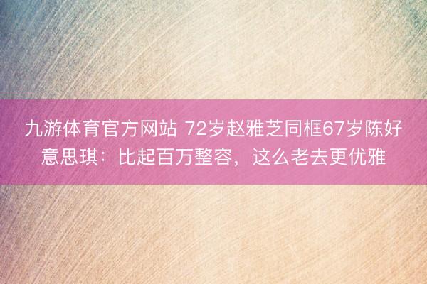 九游体育官方网站 72岁赵雅芝同框67岁陈好意思琪:比起百万整容,这么老去更优雅