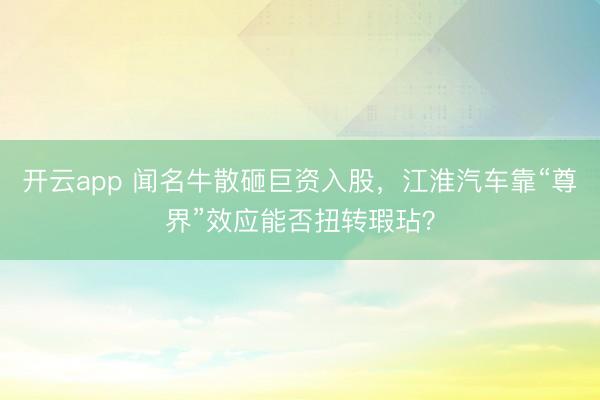 开云app 闻名牛散砸巨资入股,江淮汽车靠“尊界”效应能否扭转瑕玷?