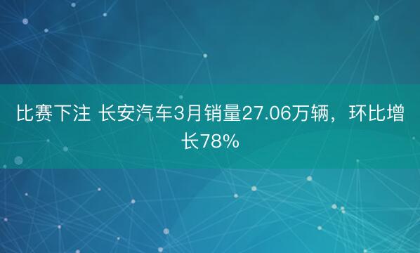 比赛下注 长安汽车3月销量27.06万辆,环比增长78%