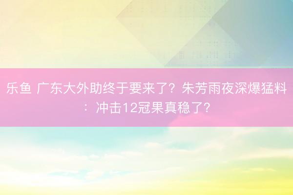 乐鱼 广东大外助终于要来了?朱芳雨夜深爆猛料:冲击12冠果真稳了?