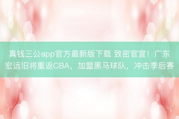 真钱三公app官方最新版下载 致密官宣!广东宏远旧将重返CBA,加盟黑马球队,冲击季后赛