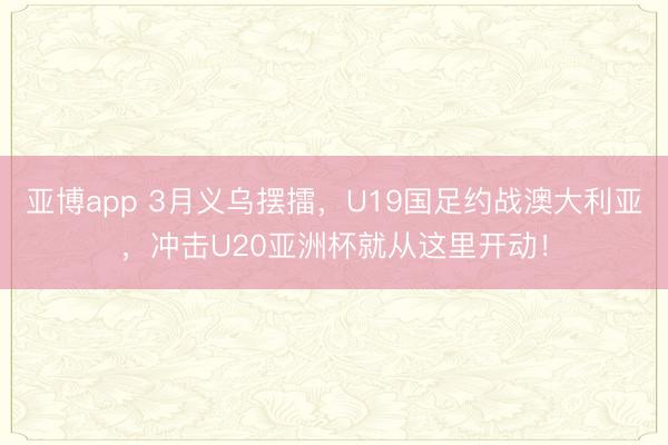 亚博app 3月义乌摆擂,U19国足约战澳大利亚,冲击U20亚洲杯就从这里开动!