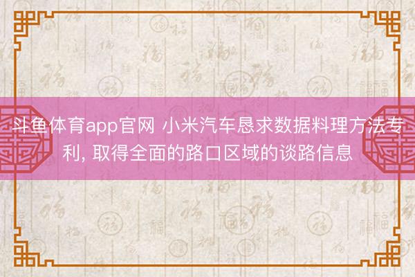 斗鱼体育app官网 小米汽车恳求数据料理方法专利, 取得全面的路口区域的谈路信息