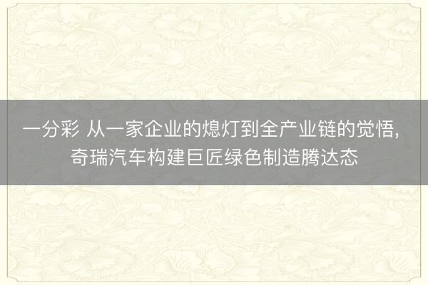 一分彩 从一家企业的熄灯到全产业链的觉悟, 奇瑞汽车构建巨匠绿色制造腾达态