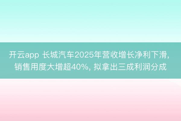 - 开云app 长城汽车2025年营收增长净利下滑, 销售用度大增超40%, 拟拿出三成利润分成