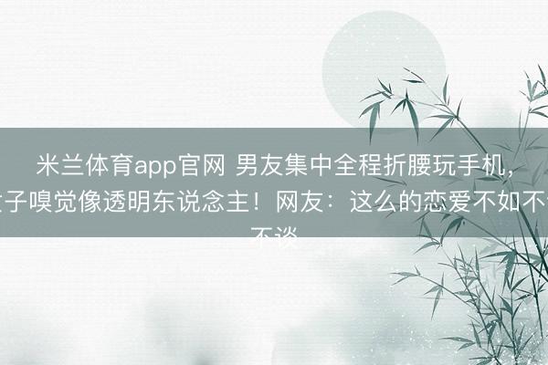 米兰体育app官网 男友集中全程折腰玩手机,女子嗅觉像透明东说念主!网友:这么的恋爱不如不谈
