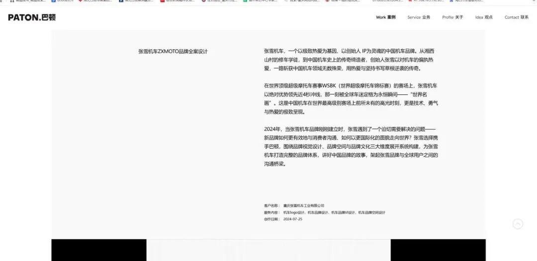 据公开信息知道,野心公司系杭州巴顿品牌野心有限公司,该公司官网展示了张雪机车ZXMOTO品牌全案野心案例,包括LOGO、店面、服装、职工工牌等,米兰野心境念是商标以张雪首字母ZX为中枢,用利落几何线条重构,以凌厉斜切造型传递赛说念速率感,彰显机车通顺的情怀与专科。