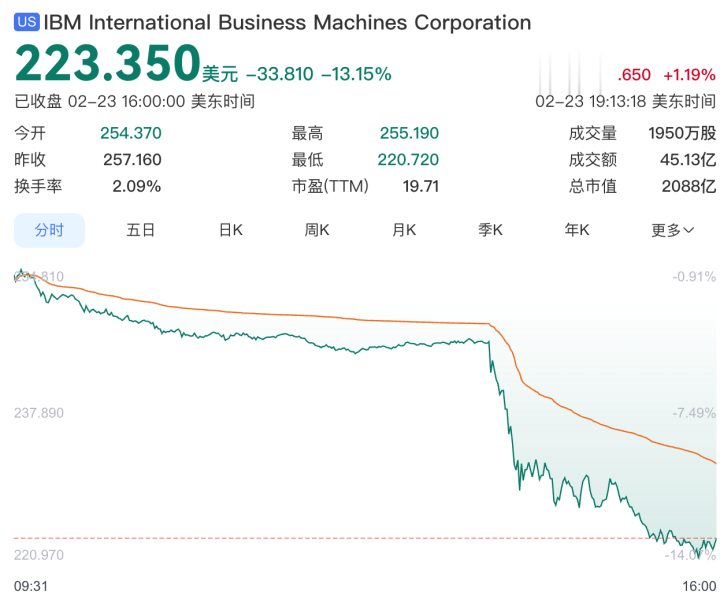 米兰 AI冲击下IBM跌超13%, 创25年来最大跌幅