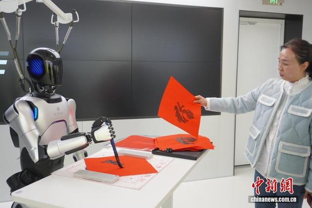 中新社记者韩章云摄3月4日,河南郑州,华夏异构东说念主形机器东说念主4S店诱骗不雅众参不雅,这是河南首家东说念主形机器东说念主4S店。该店不仅展示与销售群众主流东说念主形机器东说念主居品,还提供租借、专科关爱保重以及基于场景的定制化惩办决议,大大镌汰用户的使用门槛与风险。图为机器东说念主写羊毫字。
